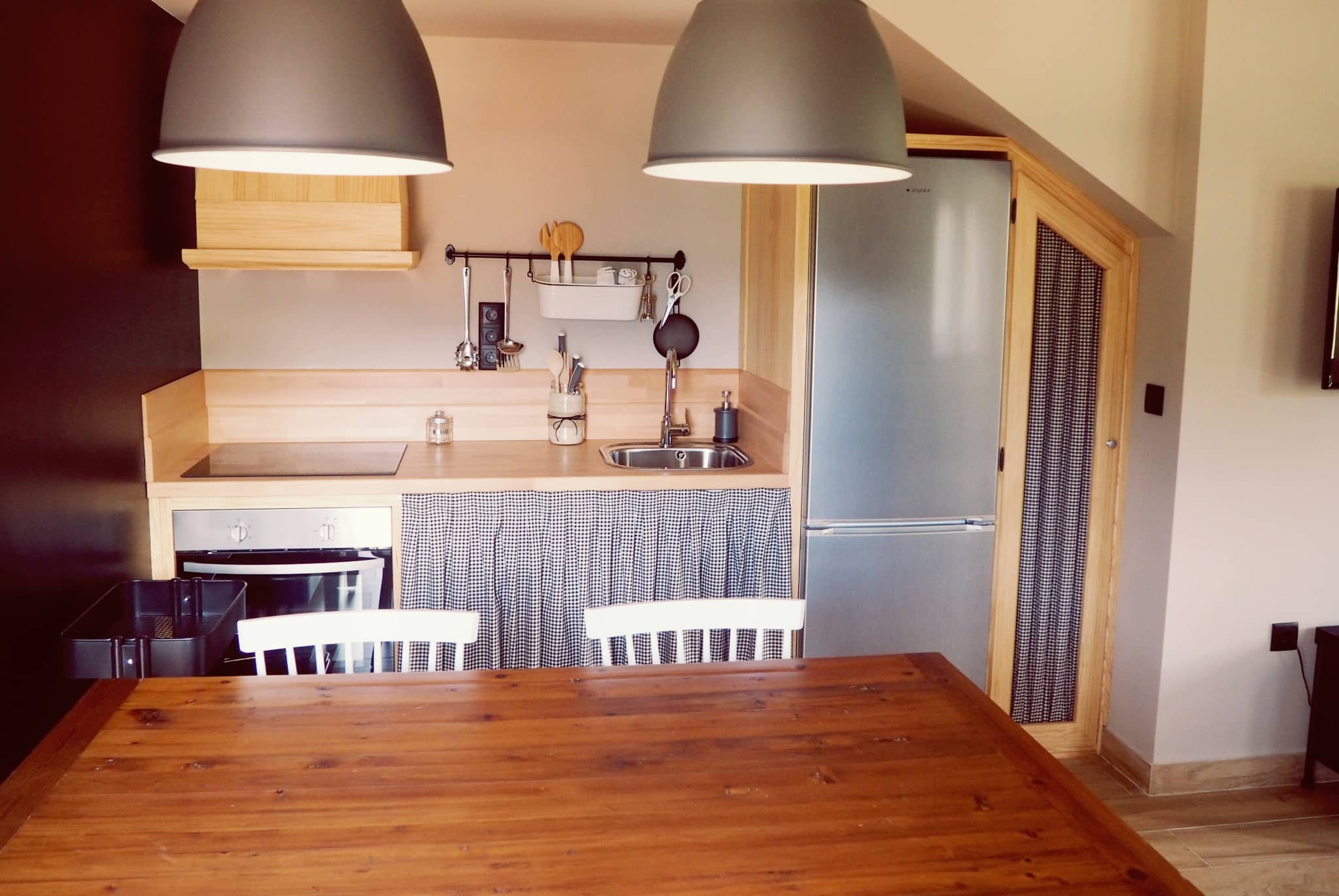 • Cocina totalmente equipada: encimera, horno, microondas, nevera, cafetera, tostadora y útiles y menaje de cocina.